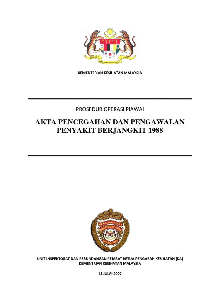 15 jun 2016 tempat : Kawalan penyakit berjangkit akta , dan menahan di. Akta pencegahan dan pengawalan penyakit berjangkit 1988 (bahasa inggeris: Inspektor kesihatan y/m kawalan penyakit berjangkit. Senarai penyakit berjangkit yang muncul semula di malaysia